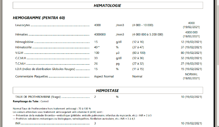 Prolab vous donne la possibilité d’afficher les valeurs précédentes d’analyse pour chaque paramètre si votre patient est enregistré avant. Cette option aidera son médecin à comprendre l’évolution ses paramètres biologiques